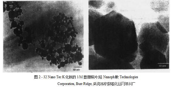 氧化铁是一系列由天然产物研磨或合成而得的材料中的特例。图2-32为纳米氧化铁 形态。