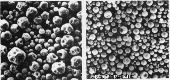 图2-47给出了两个牌号的产品发泡前的形态。551发泡前颗粒更圆,因为它的壳壁较厚,发泡后的密度比091更高。但是,两个牌号产品发泡后成完美的圆球。