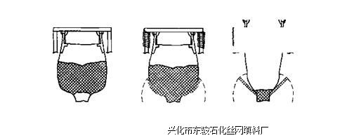 图3-13^K-Tn>nSoder公司生产的Flow - Flexer。丝网除沫器物料在运输过程中被挤压压缩,失 去流动性,卸料时不能连续进行。如图中的左边所示,有各种阻碍流动的现象,而Flow- Flexer包装袋抖动器以一定间隔上下抖动倒置袋的底边(中)。随着袋子变轻,抖动将袋底拉 斜,同时Pop-Top包装袋