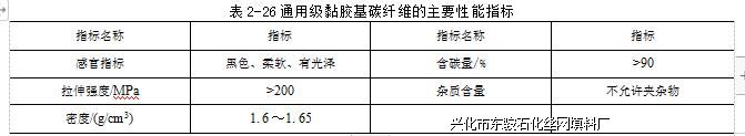通用级黏胶基碳纤维的主要性能指标如表2-26所列。