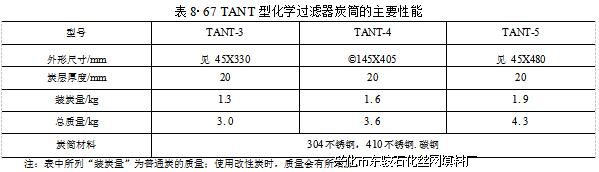 TANT型化学过滤器炭筒的主要性能见表8-670