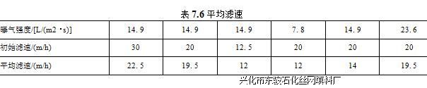 表7. 6为通过计算得出的平均滤速,综合对比运行周期,去除率,平均滤速及稳 定性,可见,当滤速为20m/h,曝气强度为14.9L/(m2・s)时,反应器运行达到最佳工况。