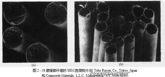 (a)BesGghh Toho Rayoti» Co.; (b)Compniat, Composite Materials 商(TohoRayon, Co.和Composite Materials, L. L.C.)所提供产品的表面和截面形态。包镣纤维 的电阻率仅比镣高一个数量级,但是比未包镣纤维的电阻率低两个数量级。