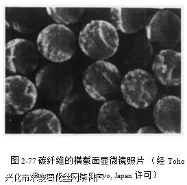 是环氧和双马来酰亚胺)促进碳纤维的结合。图2-77是碳纤维的横截面显微镜照片,可以 和图2-38所示的镣包膜的纤维照片相比较。