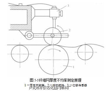 (2) 厚度测定法 该法是通过测定纤维网厚度来测定纤维网的不均率,测定原理如图5-5所示。