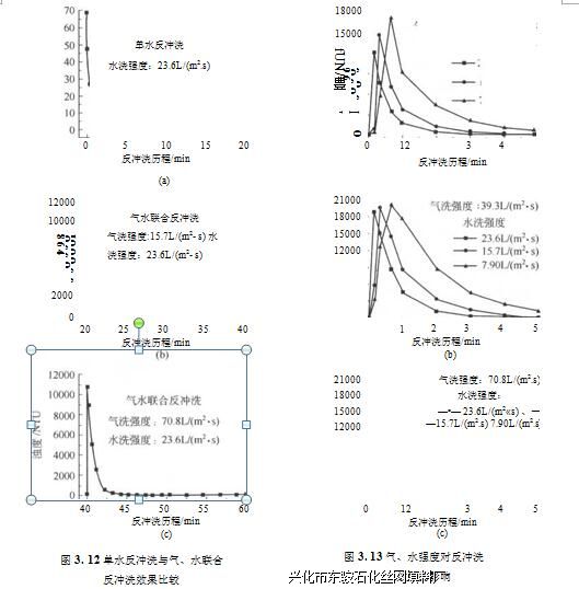 作者通过如下的研究,最终确定长纤维高速过滤器的反冲洗程序和适宜的反冲洗 气、水强度,并借此进一步阐明长纤维高速过滤器在反冲洗方面的性能和优势。